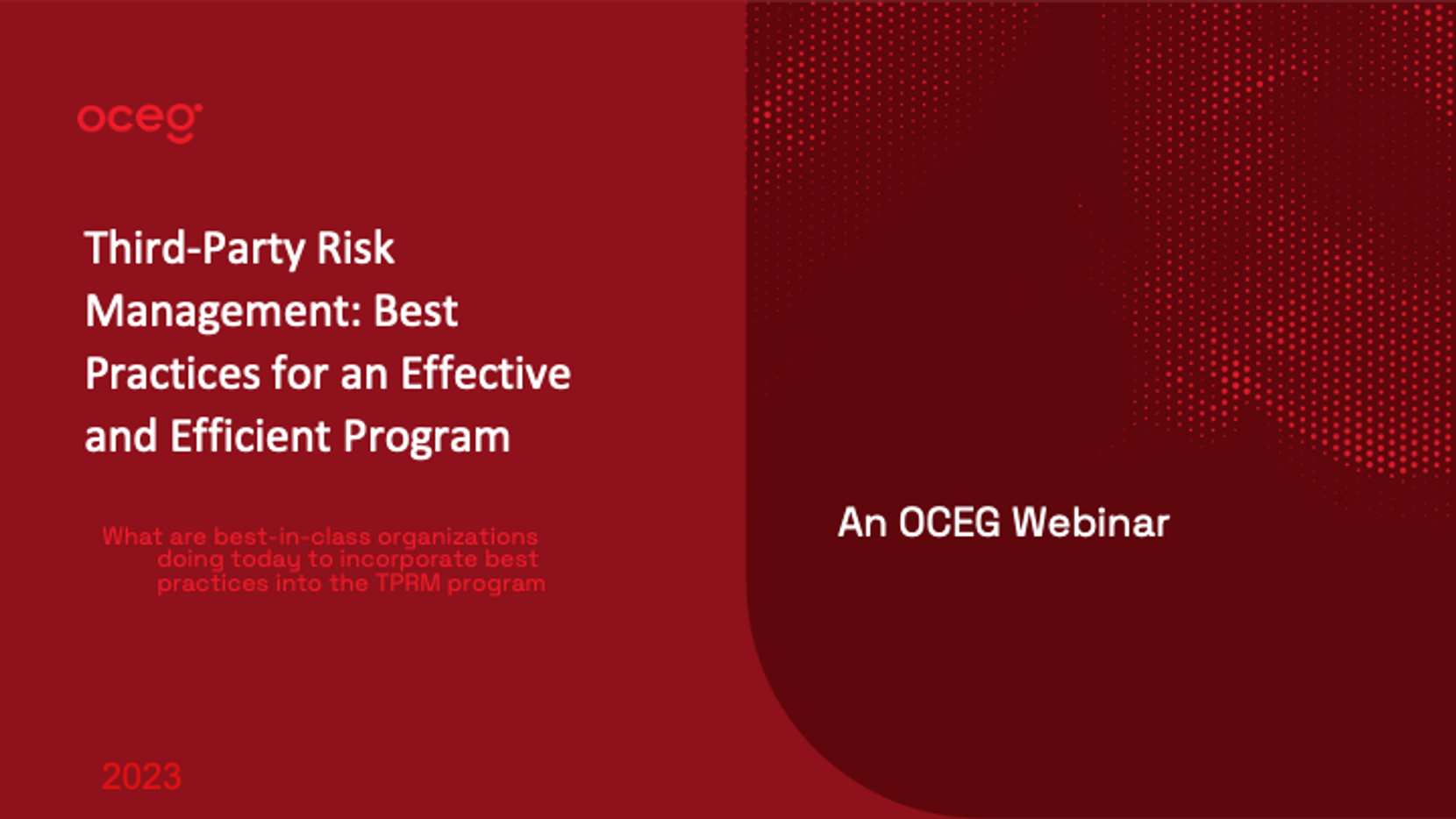 What are best-in-class organizations doing today to streamline onboarding, make ongoing monitoring more efficient and ultimately drive more risk out of the business? We hope you will join us for this informative session to learn how to incorporate best practices into your TPRM program.