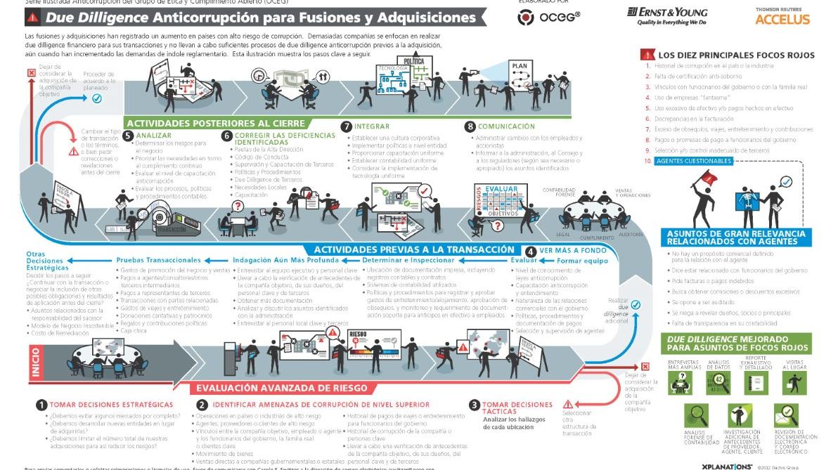 Demasiadas compañías se enfocan en realizar due dilligence financiero para sus transacciones y no llevan a cabo suficientes procesos de due dilligence anticorrupción previos a la adquisición, aún cuando han incrementado las demandas de índole reglamentario. Esta ilustración muestra los pasos clave a seguir.