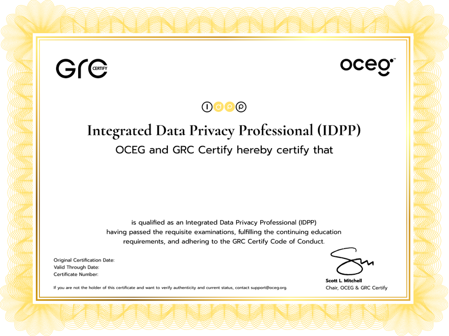 Effective data privacy management is an essential aspect of a GRC capability that drives the attainment of Principled Performance. The Integrated Data Privacy Professional (IDPP) certification validates that you understand how to develop an effective and fully integrated data privacy program. It ensures that you have the versatile skill set to integrate and advise on applying a GRC approach to the governance, management, and assurance of the data privacy program.