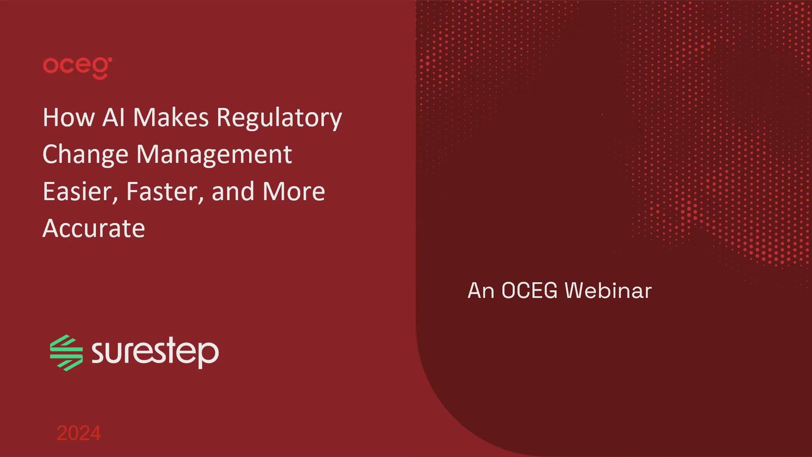 Join us as we walk through OCEG™'s new Illustration about AI and Regulatory Change to learn how artificial intelligence and automation can help improve the effectiveness, efficiency, and reliability of the regulatory change management process.