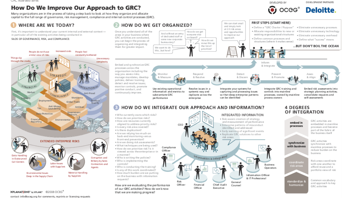 Many organizations are in the process of reviewing and evaluating how they organize and allocate capital to the full range of governance, risk management, compliance and internal control processes (GRC).