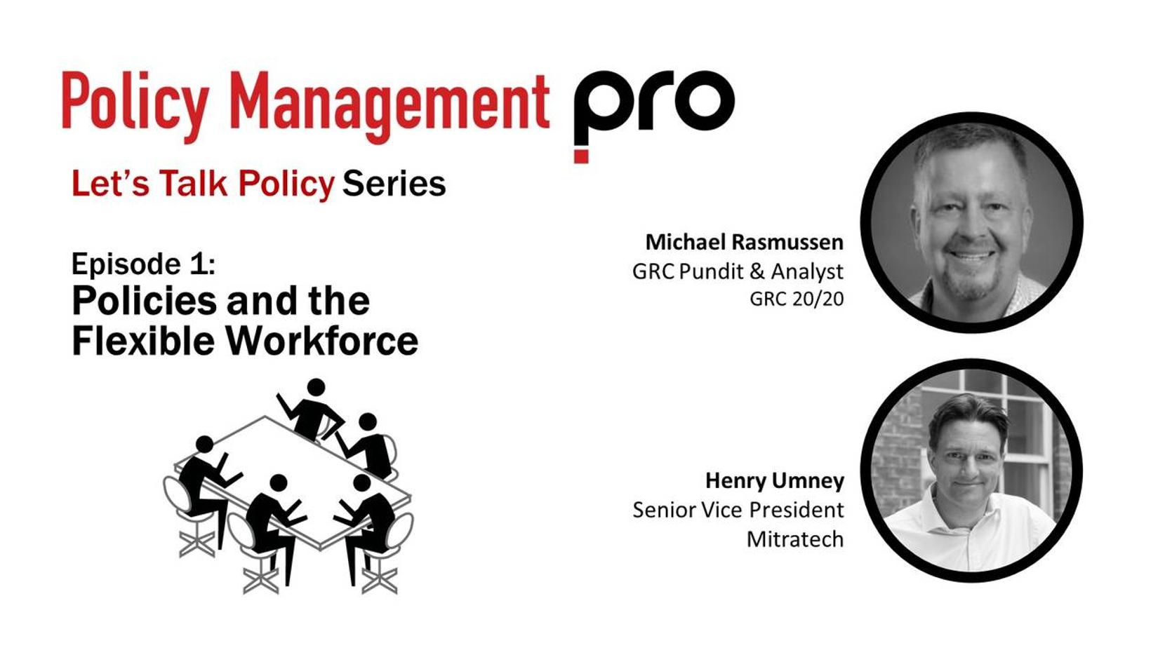 Michael Rasmussen is joined by Henry Umney of Mitratech for this discussion about policy management in the evolving hybrid work environment. Join them for a discussion of how "work from home" may look in the future, the challenges it presents for policy management, and how modern technology can help.