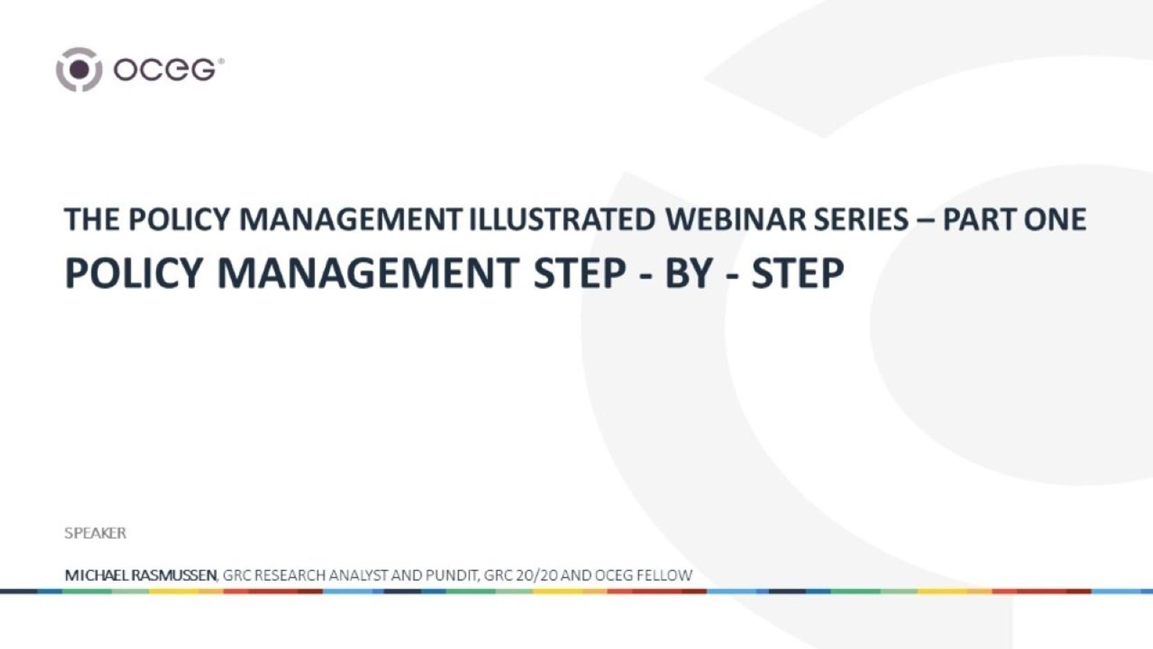 OCEG™ and GRC20/20 are pleased to present the Policy Management Illustrated Webinar Series as a complete resource for maturing your policy management processes and systems of policy control.