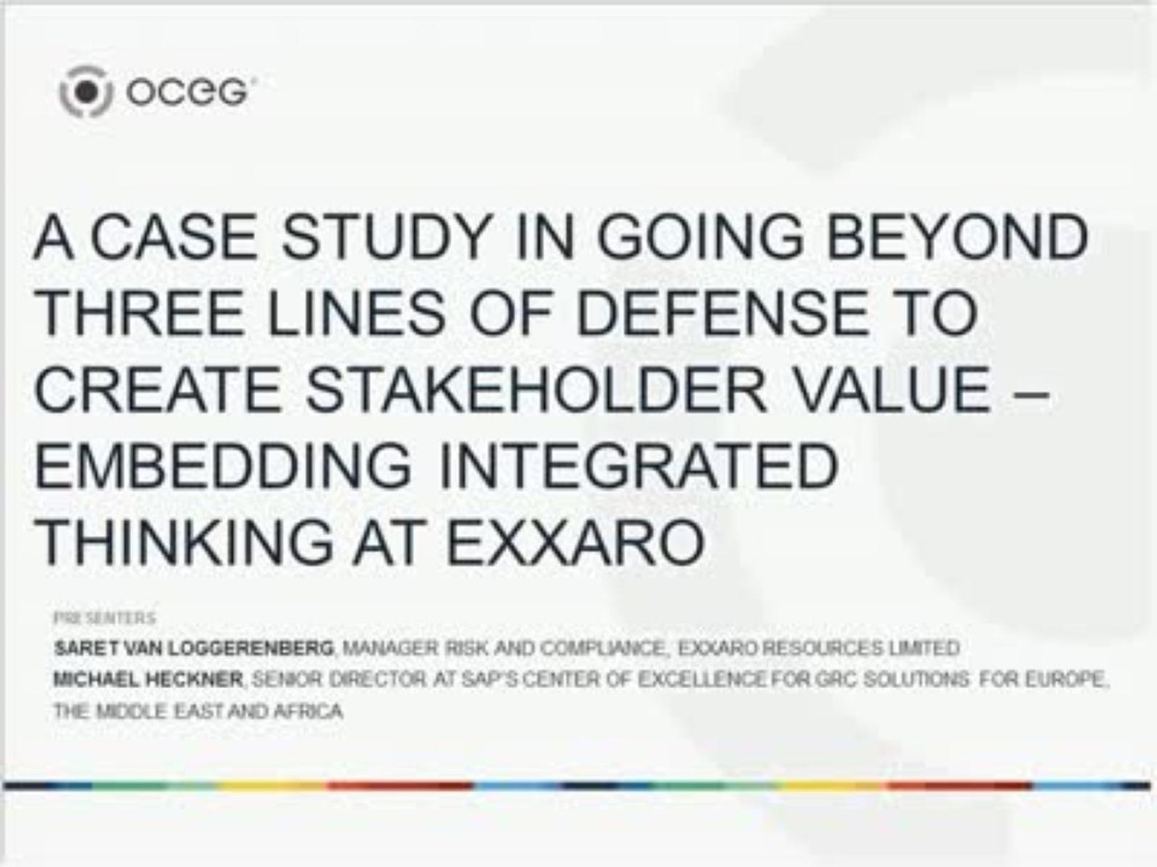 Learn how Exxaro, a South African mining company, implemented a highly unique and innovative approach going well beyond the key principles of three lines of defense. Using a risk based approach Exxaro has embedded integrated thinking into the organization. Their approach to three lines of defense starts at the “coal face” and ends at the Board of Directors. They have operationalized their practices and employed technology to scale and sustain their initiative.