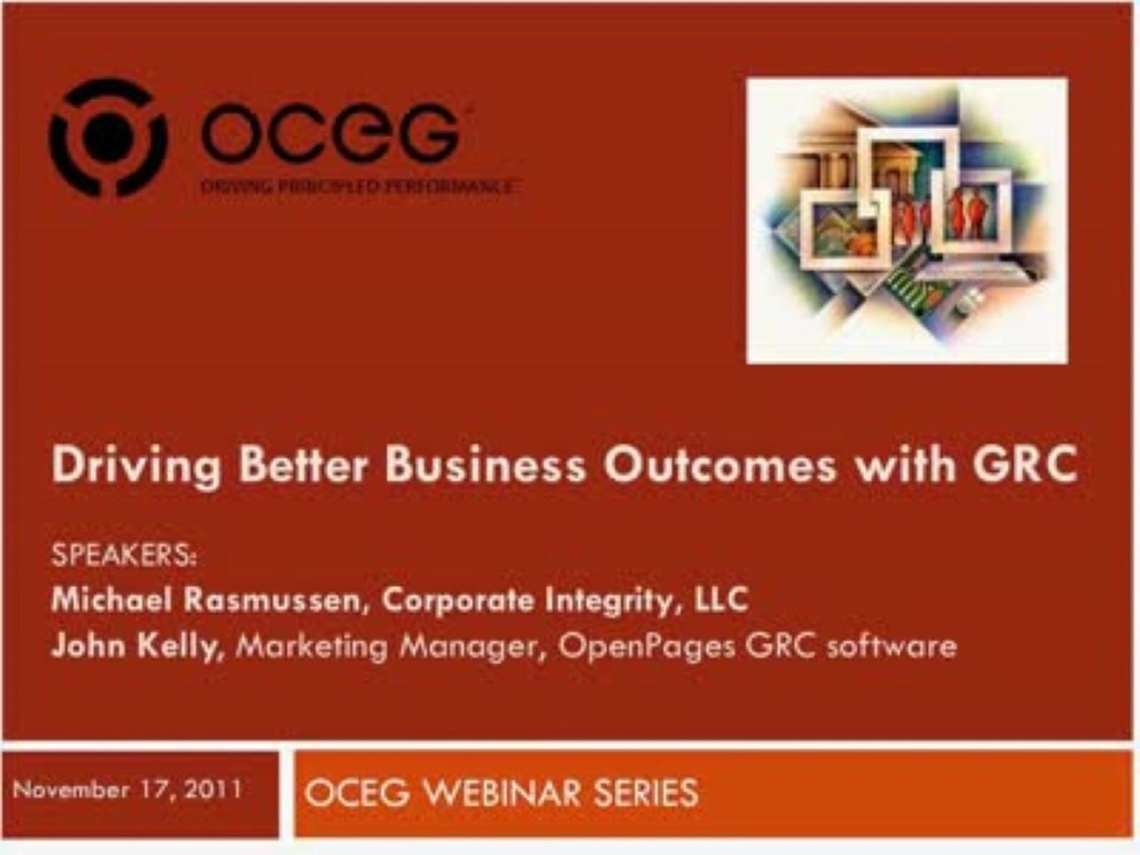 In this webinar, Michael Rasmussen, who chairs the OCEG™ Technology Council, and John Kelly of IBM OpenPages will be taking a look at how companies are beginning to use business analytics in conjunction with their GRC programs to derive insight about business operations and manage effectively through a constantly changing risk and regulatory environment.