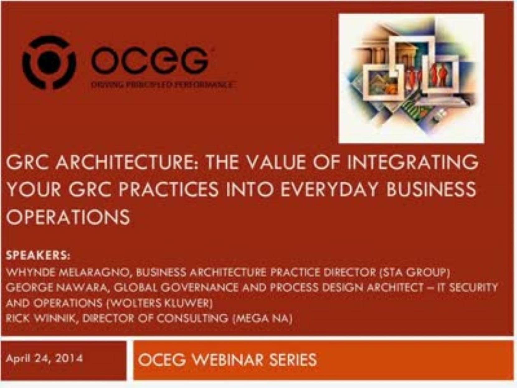 GRC practices should deliver tangible value to the business. Does yours take strategy into account? Does it drive business performance? Are you currently utilizing your GRC practices to plan, implement, assess, and improve transformations? A GRC Architecture approach provides visibility into the business to foster alignment with strategies, business processes, information systems, and corporate objectives.