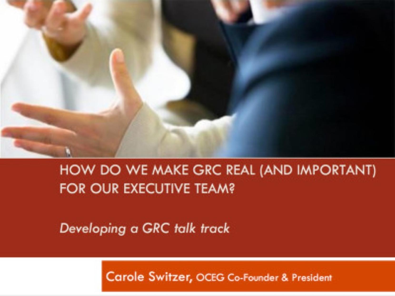 In this webcast, OCEG™ President Carole Switzer discusses how we should talk to our management teams and other influencers within our organizations about the competitive edge of an effective and mature GRC Capability.