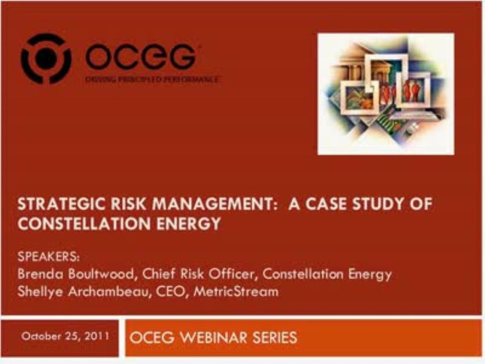 Then join us for a presentation by Constellation Energy – the winner of a 2011 GRC Achievement Award and the Peer Choice Prize for most interesting project, which was awarded by OCEG™ at Compliance Week 2010.
