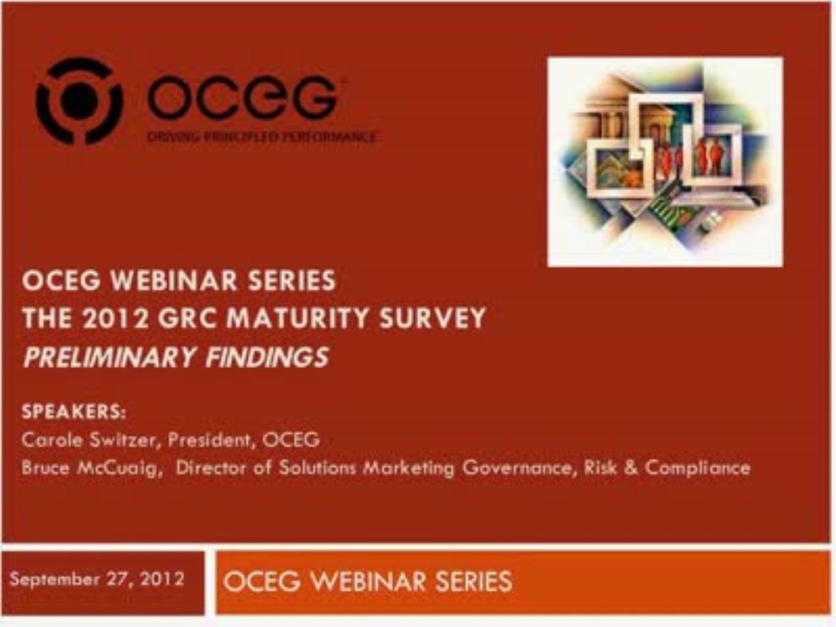 Every two years, OCEG™ collects GRC Maturity Survey responses from individuals who serve in all of the relevant roles that make up an integrated governance, risk and compliance (GRC) capability. This year’s survey, which has been sponsored by OCEG™...