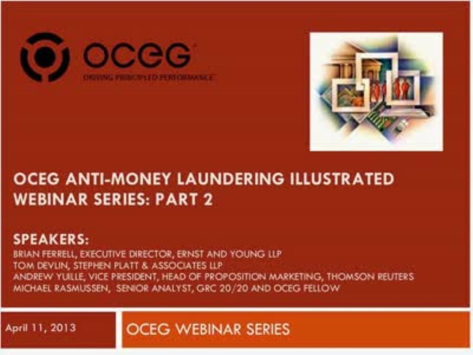 Join OCEG™ and a panel of experts for the second of four in depth webinars on the challenges of developing an effective anti-money laundering program.